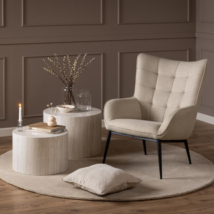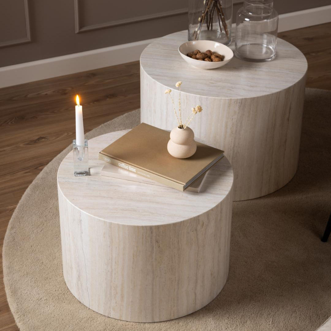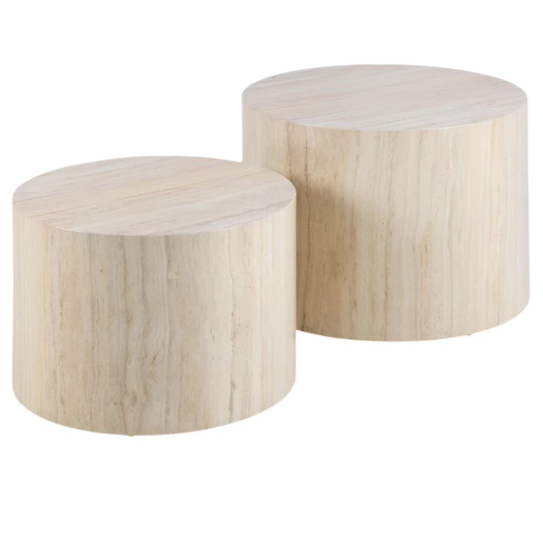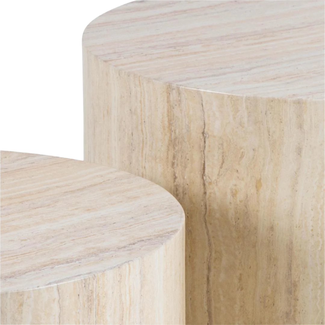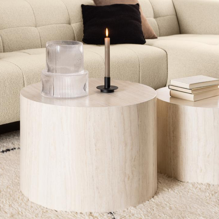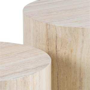 The Diro side table introduces architectural interest through its sculptural rounded geometry and refined travertine aesthetic. Position it as an independent accent piece or layer multiple tables to establish visual complexity within your space. Its restrained, contemporary design integrates effortlessly into diverse interior schemes, from minimalist to traditional settings.