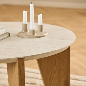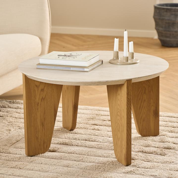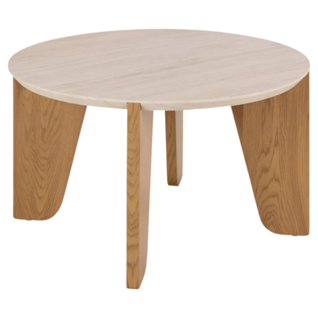 The Dockland side table redefines contemporary elegance through thoughtful material pairing and refined geometry. Its travertine-inspired surface meets warm oak tones, creating a sophisticated focal point that balances understated luxury with visual impact.