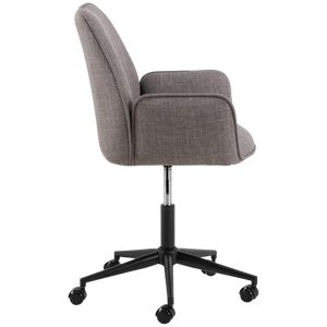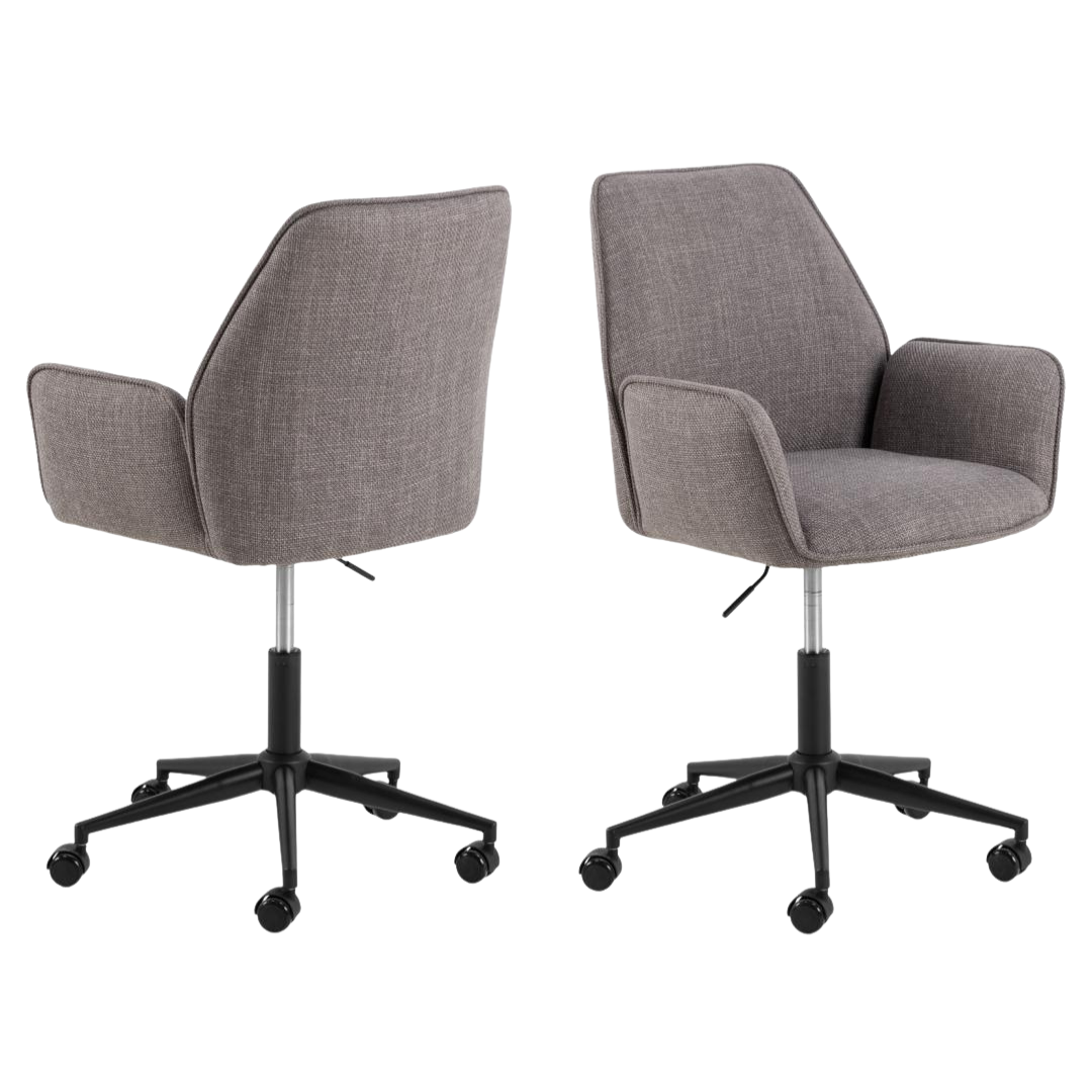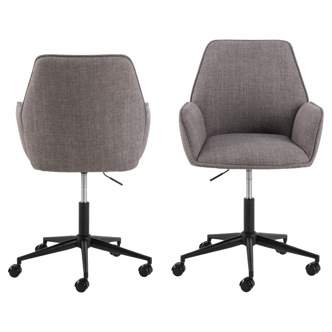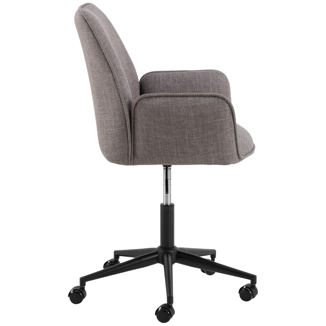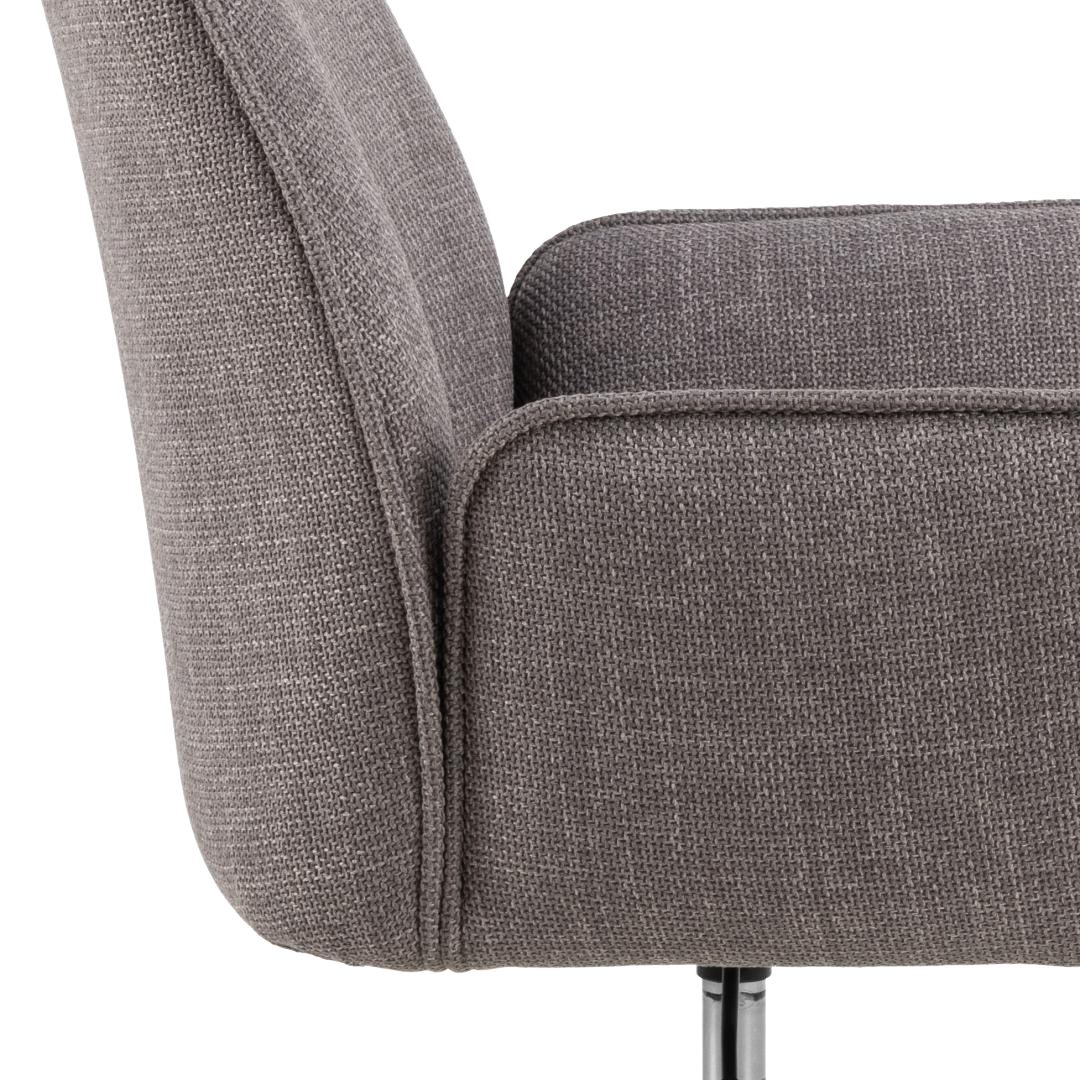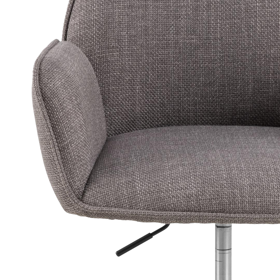 The EMMA DESK office chair represents a sophisticated approach to workspace seating, balancing contemporary aesthetics with practical performance. Its structured fabric upholstery in warm greige tones, accented with refined piping details, introduces visual refinement while maintaining neutral versatility.