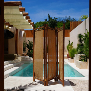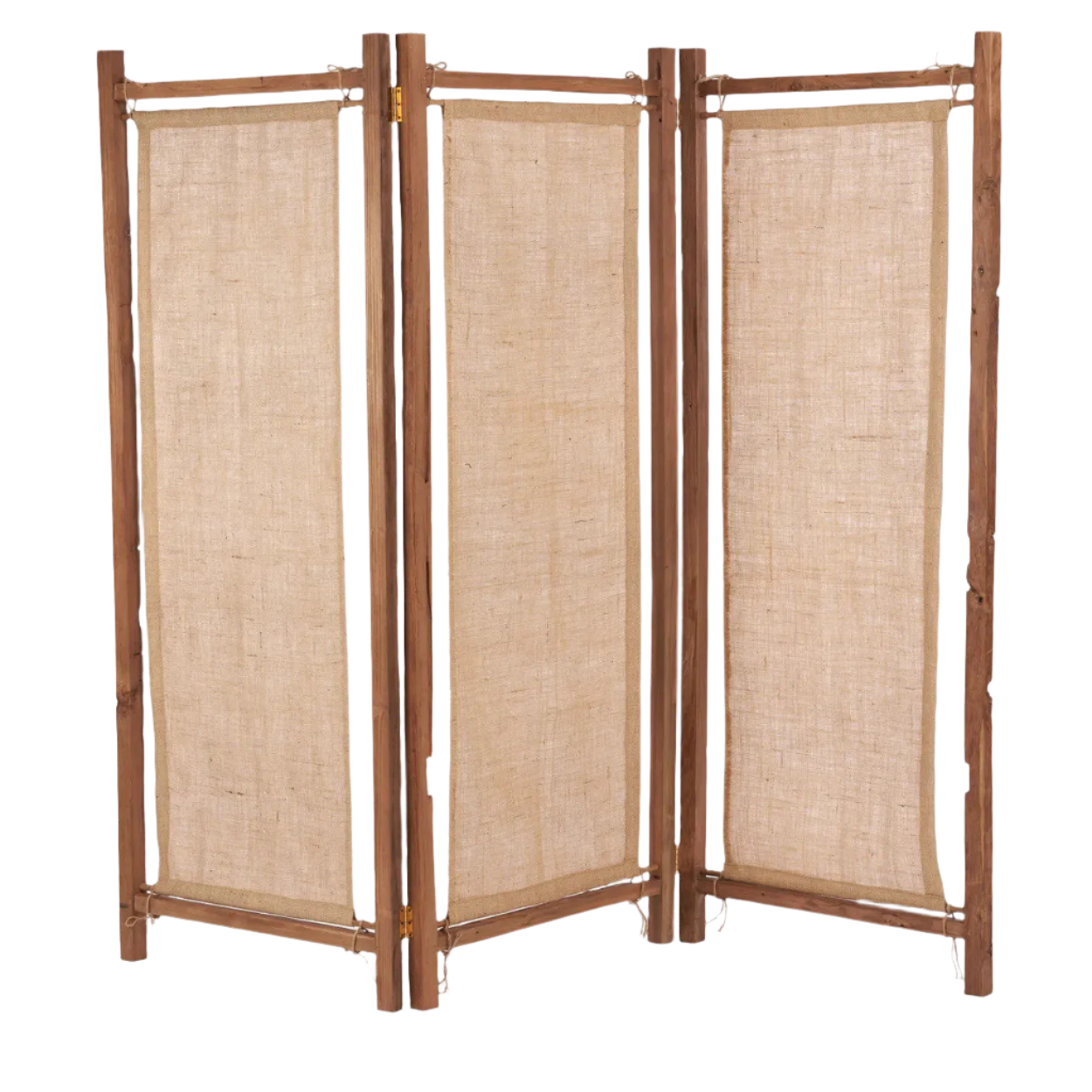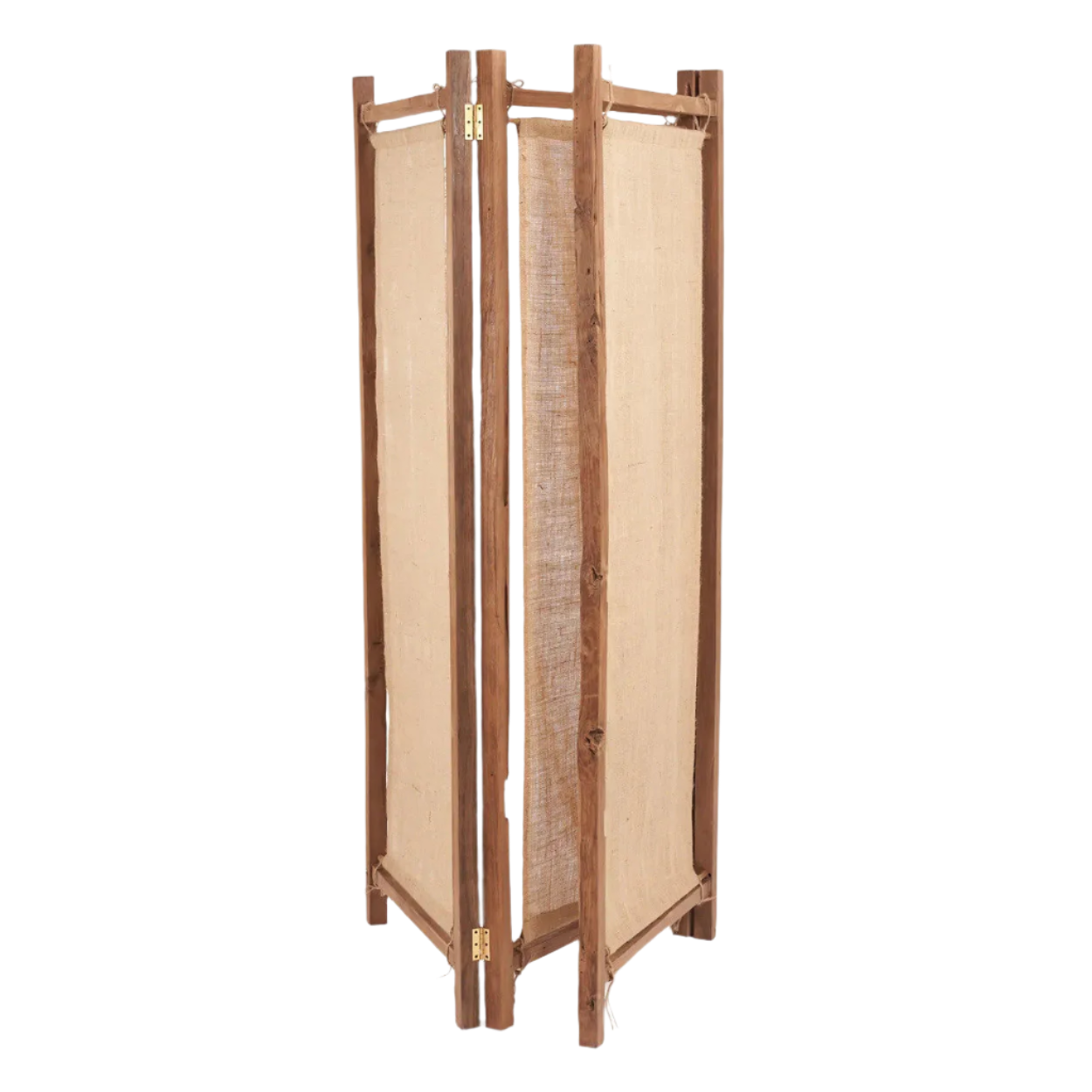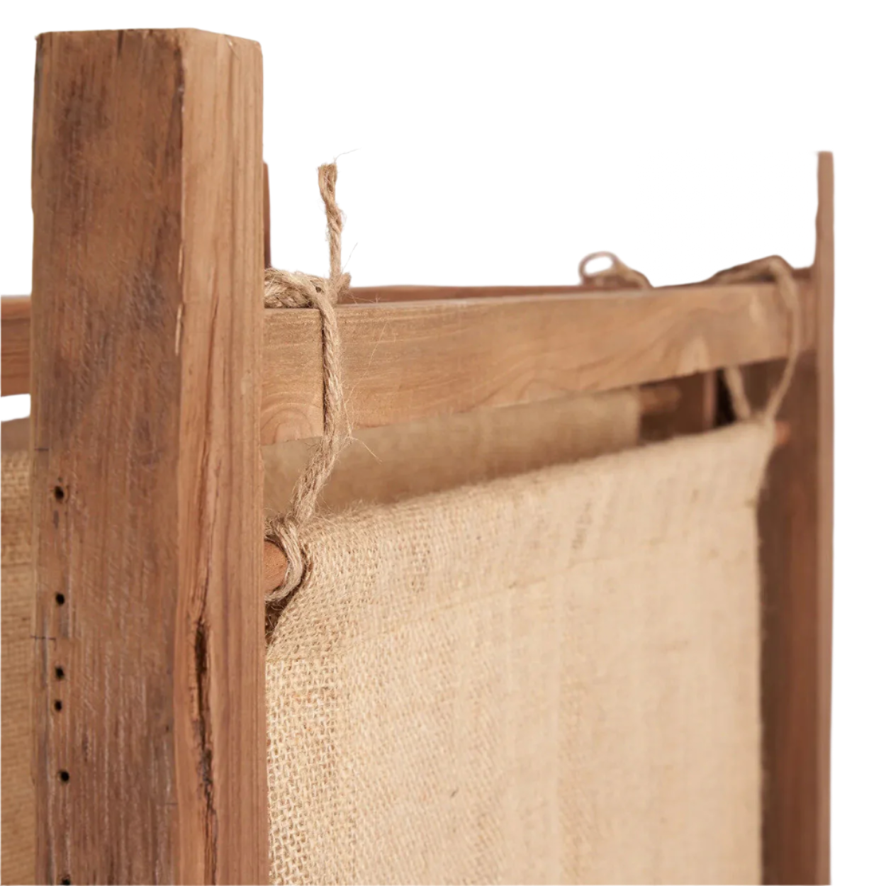 This room divider merges sustainable design with understated elegance. Crafted from reclaimed teak, each piece carries its own distinctive character while reducing environmental impact.