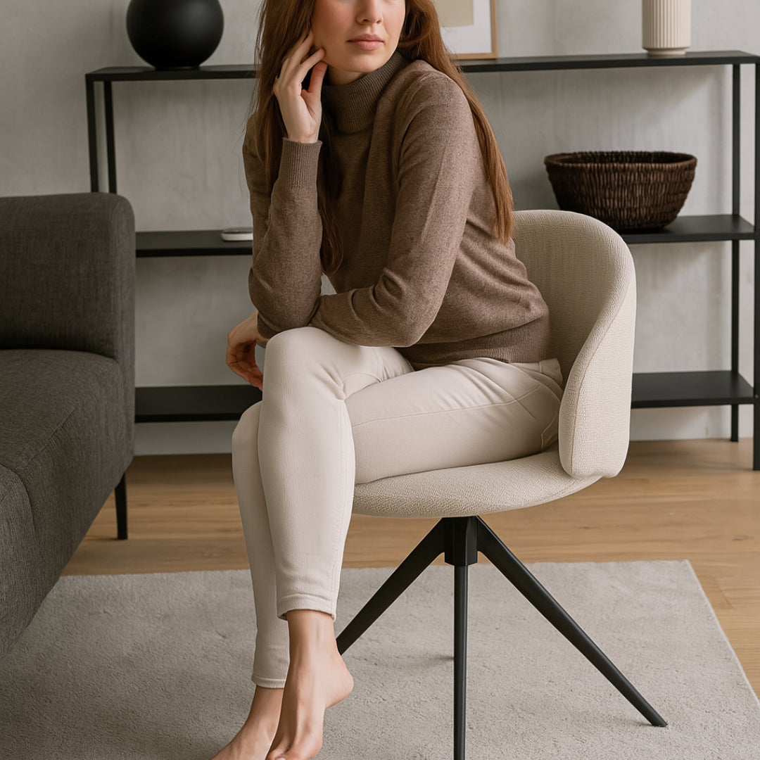 Wrapped in soft, premium upholstery engineered to maintain its appearance through rigorous daily use, this chair features a complete 360-degree rotational base for seamless mobility and a minimalist steel framework that anchors interiors with understated elegance.