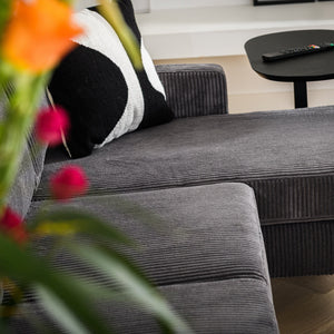 The plush fabric invites extended relaxation while maintaining an elegant silhouette. Choose between left or right configurations to suit your spatial layout, with timeless finishes in anthracite or natural tones that complement diverse interior schemes.