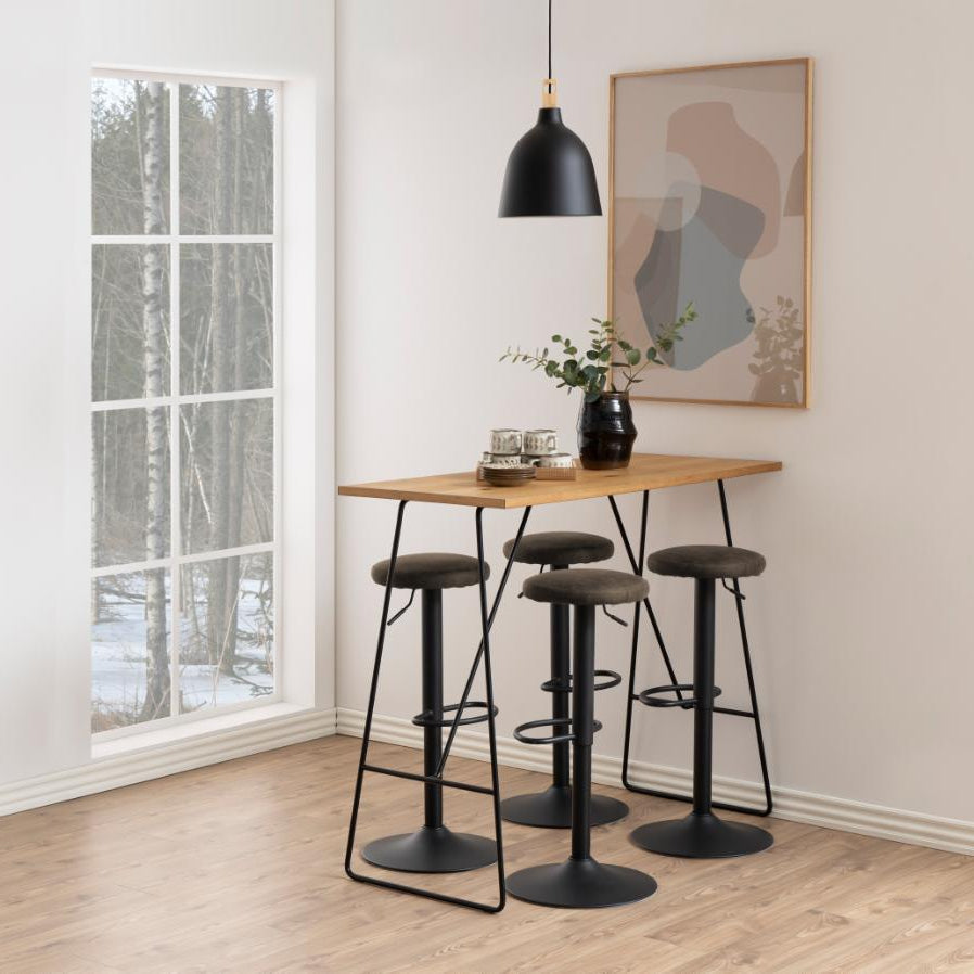 Personalize your home or workspace with this modern and industrial bar stool. The adjustable height, supportive footrest and stable powder-coated base provide a characteristic appearance.