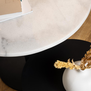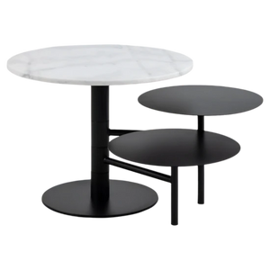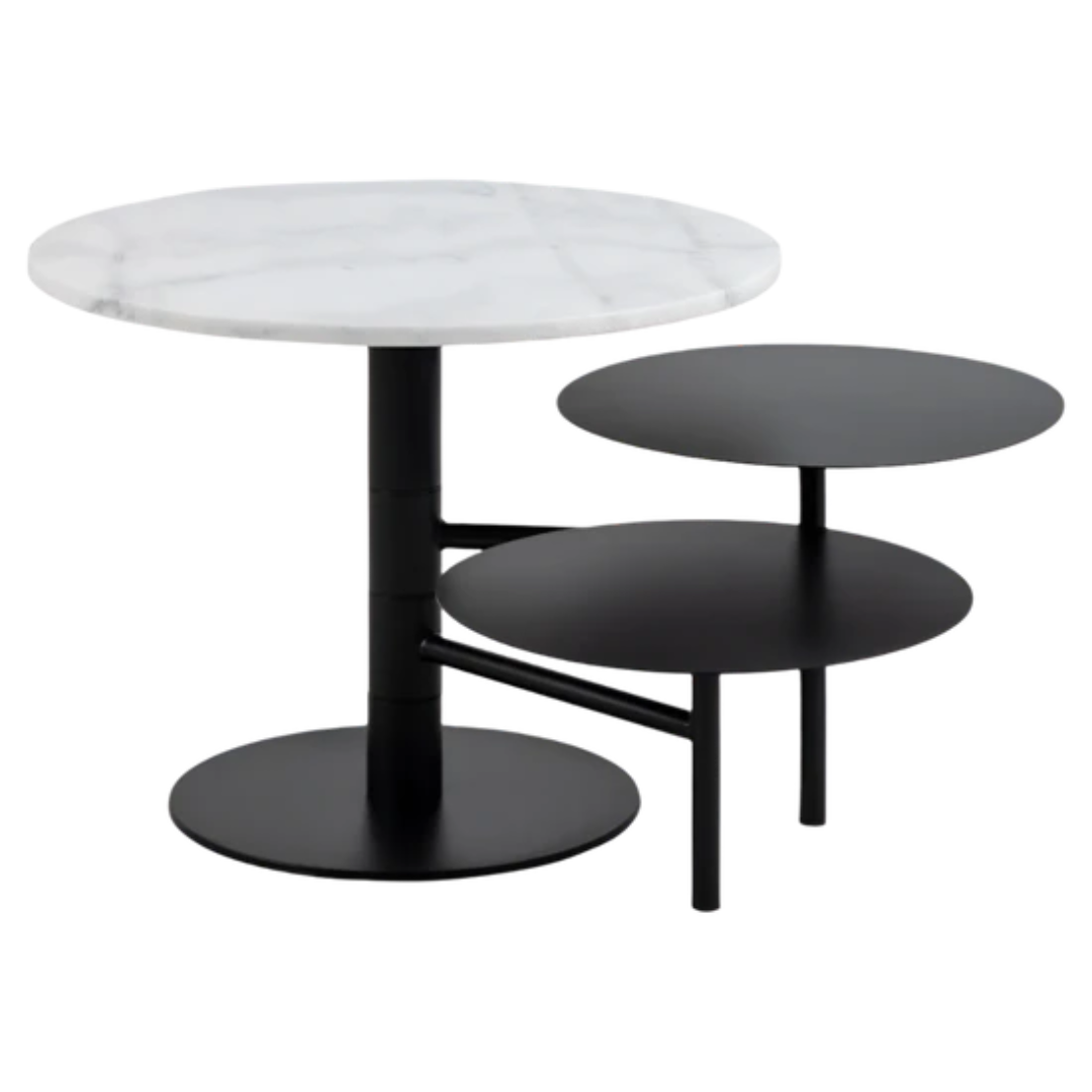 Constructed from black steel and white marble, this piece balances material sophistication with dynamic functionality, creating visual depth through intentional height variation. The rotating elements introduce an interactive dimension rarely found in traditional side tables, transforming it from static furnishing into an adaptive design solution.