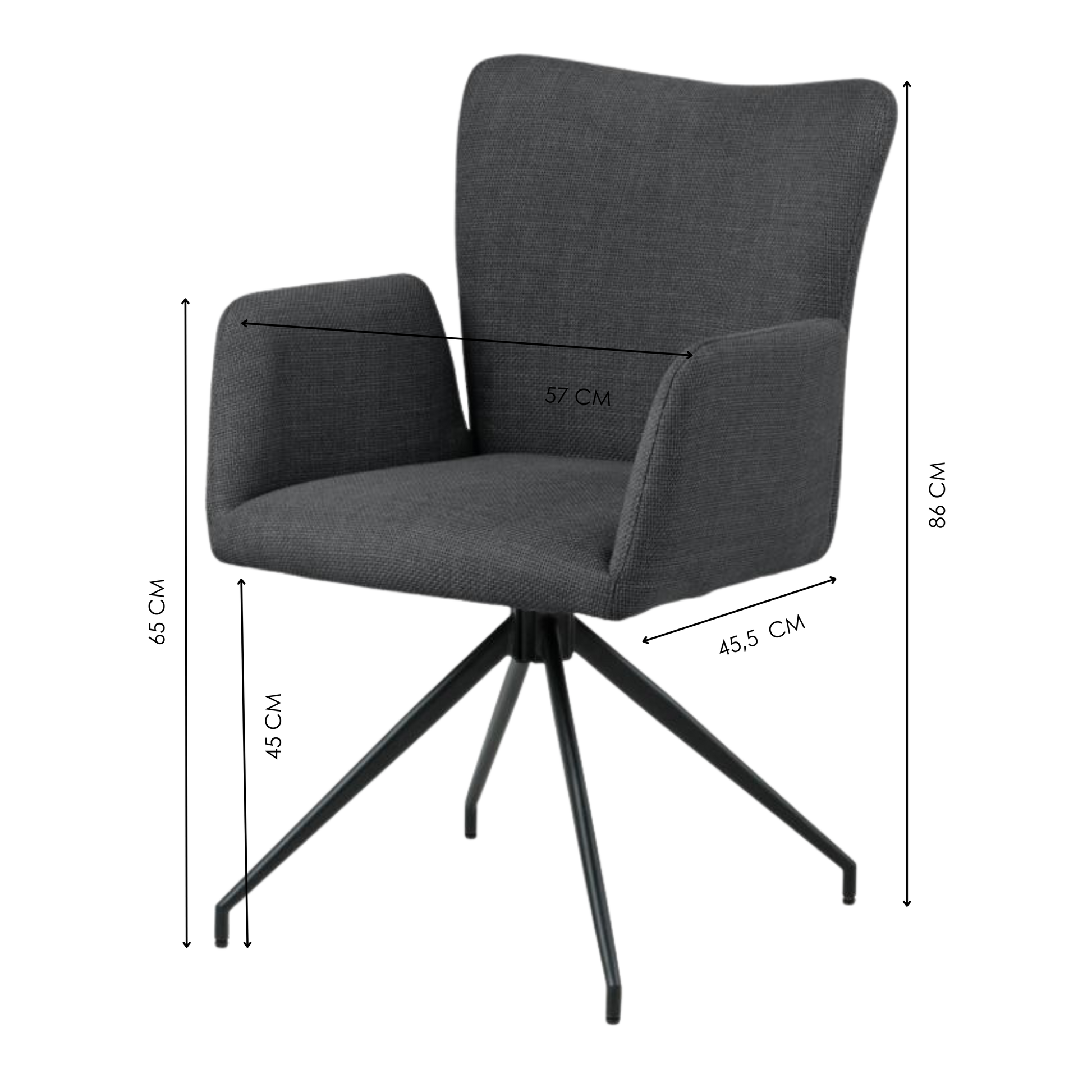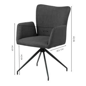 The Lena dining chair combines refined comfort with contemporary design sensibility. Upholstered in sumptuous fabric that withstands intensive daily use, this chair features a full 360-degree swivel mechanism for effortless repositioning and a minimalist steel frame that anchors any dining setting with understated sophistication.