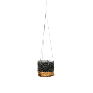 The LEYA planter showcases botanical displays with understated sophistication and sustainable materials. Hand-crafted from woven banana leaf and seagrass, this suspended vessel introduces organic texture and playful dimension to any interior or sheltered outdoor setting.