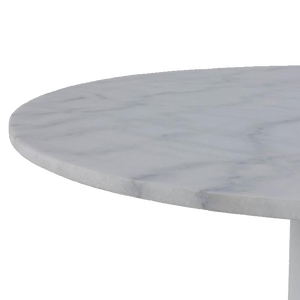 Seating four to six comfortably, the table features a powder-coated steel trumpet pedestal that delivers unwavering structural integrity. Engineered from premium materials, the top resists scratching and demands minimal maintenance, preserving its pristine appearance effortlessly.