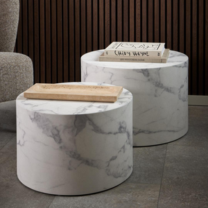 The Lipo side table transforms your living space with its distinctive rounded silhouette and sophisticated travertine-inspired finish. This versatile piece works beautifully as a standalone statement or paired with additional tables to create layered visual interest.