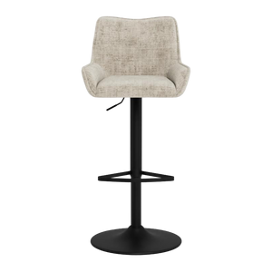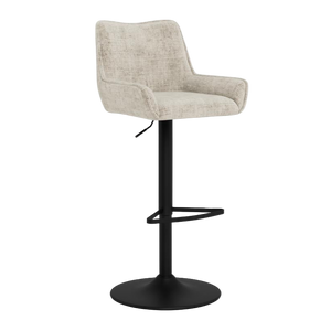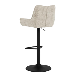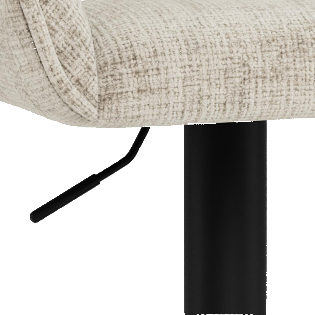 The MAX BAR stool seamlessly integrates refined aesthetics with practical functionality, elevating any contemporary kitchen or bar environment. Upholstered in supple beige fabric, the seat delivers tactile comfort while maintaining a sophisticated visual presence.