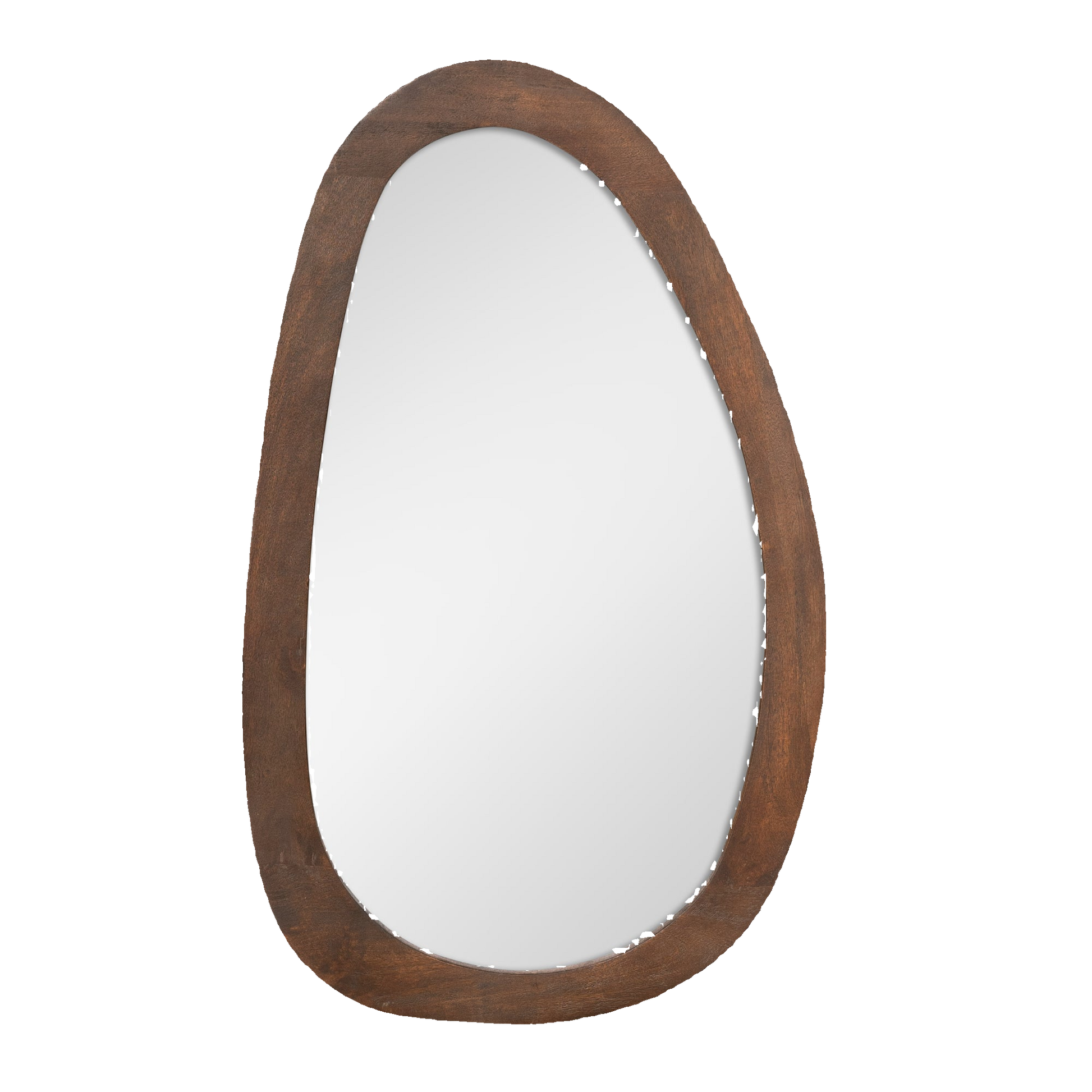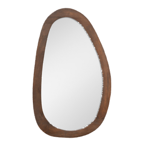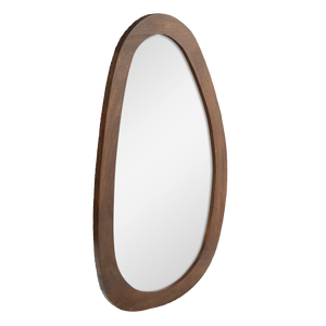 The CLARO mirror brings together organic elegance and sustainable craftsmanship. Handcrafted from solid mango wood, this piece showcases warm, rich tones and a flowing, asymmetrical silhouette that softens any space.
