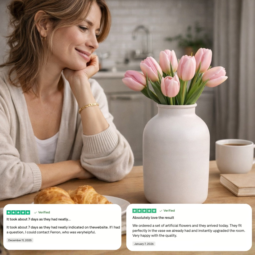 Clean and balanced, it creates a calm foundation, beautiful on its own or styled with minimal branches or silk flowers.