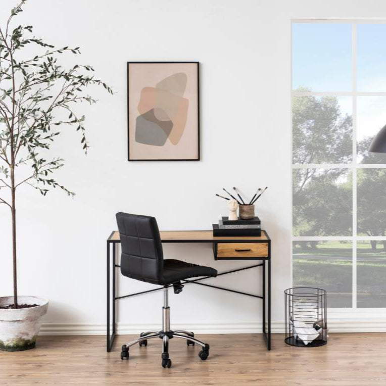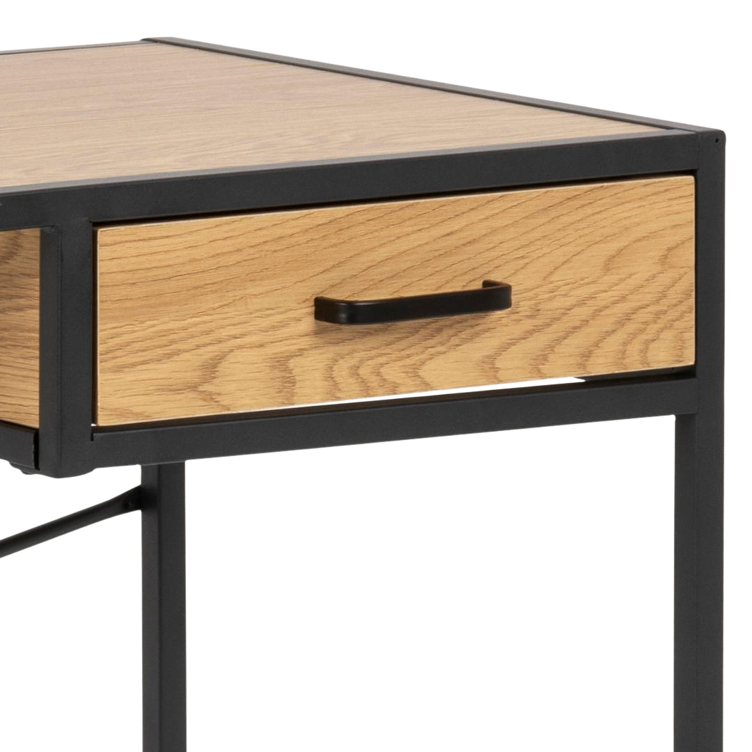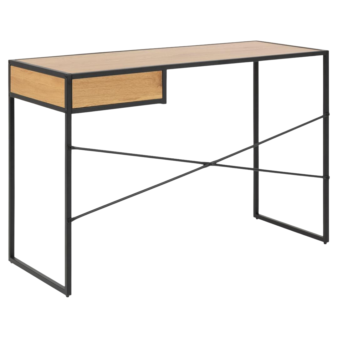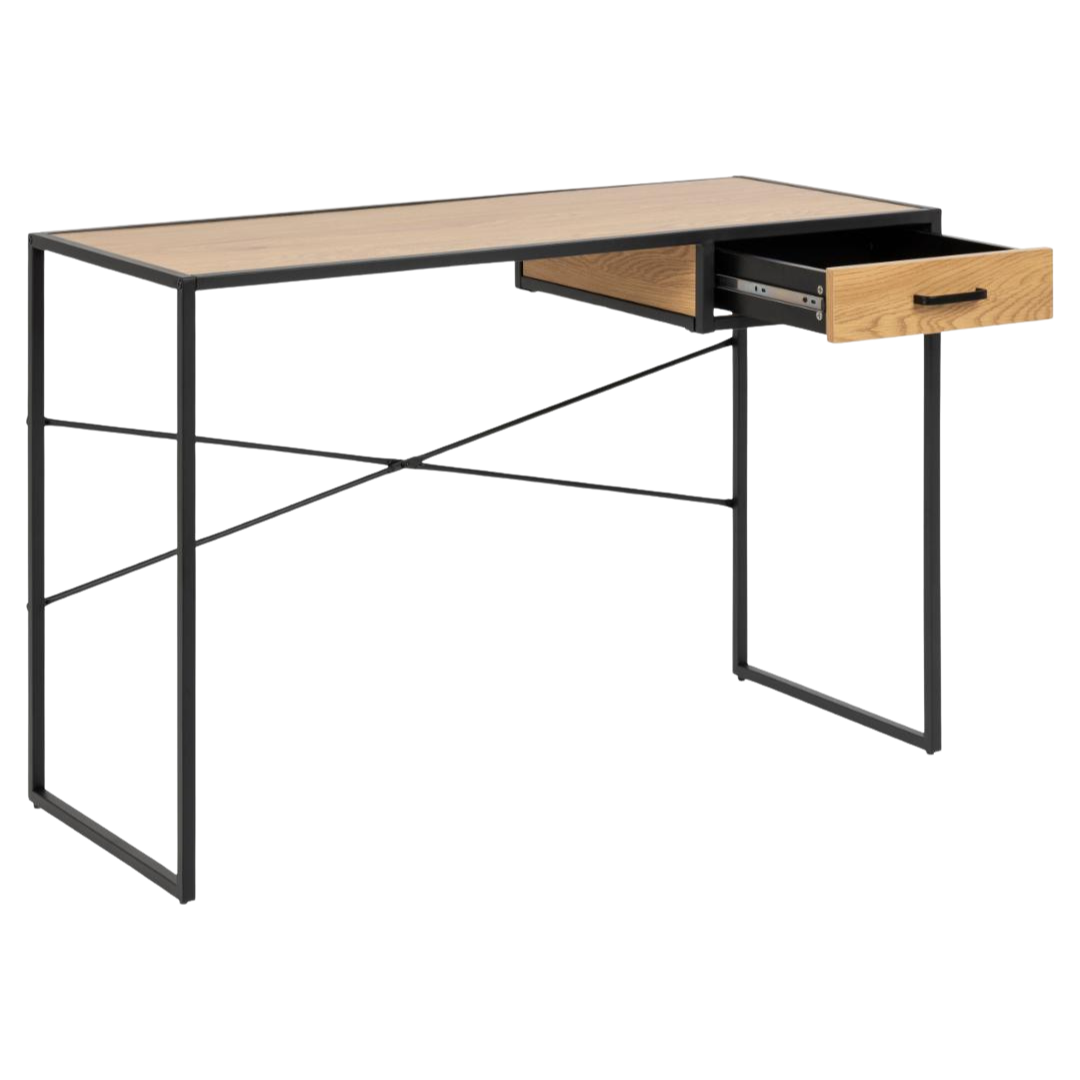 The streamlined profile optimizes spatial efficiency, making it an ideal solution for compact work environments and residential offices. An integrated storage drawer provides practical organization for writing instruments and desk accessories.