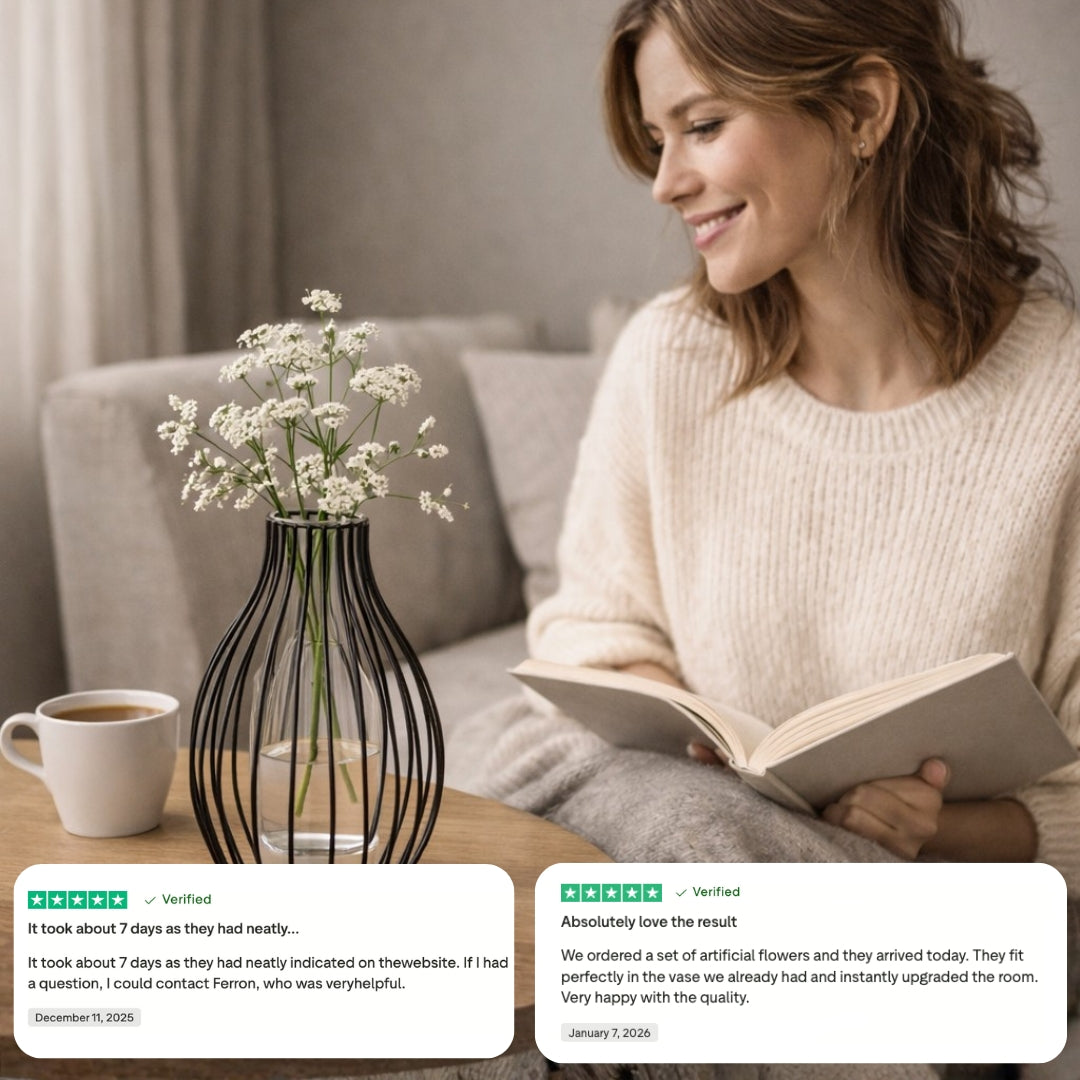 The Quiet Form Vase brings light structure and calm contrast to your interior with its open metal frame and softly rounded silhouette.