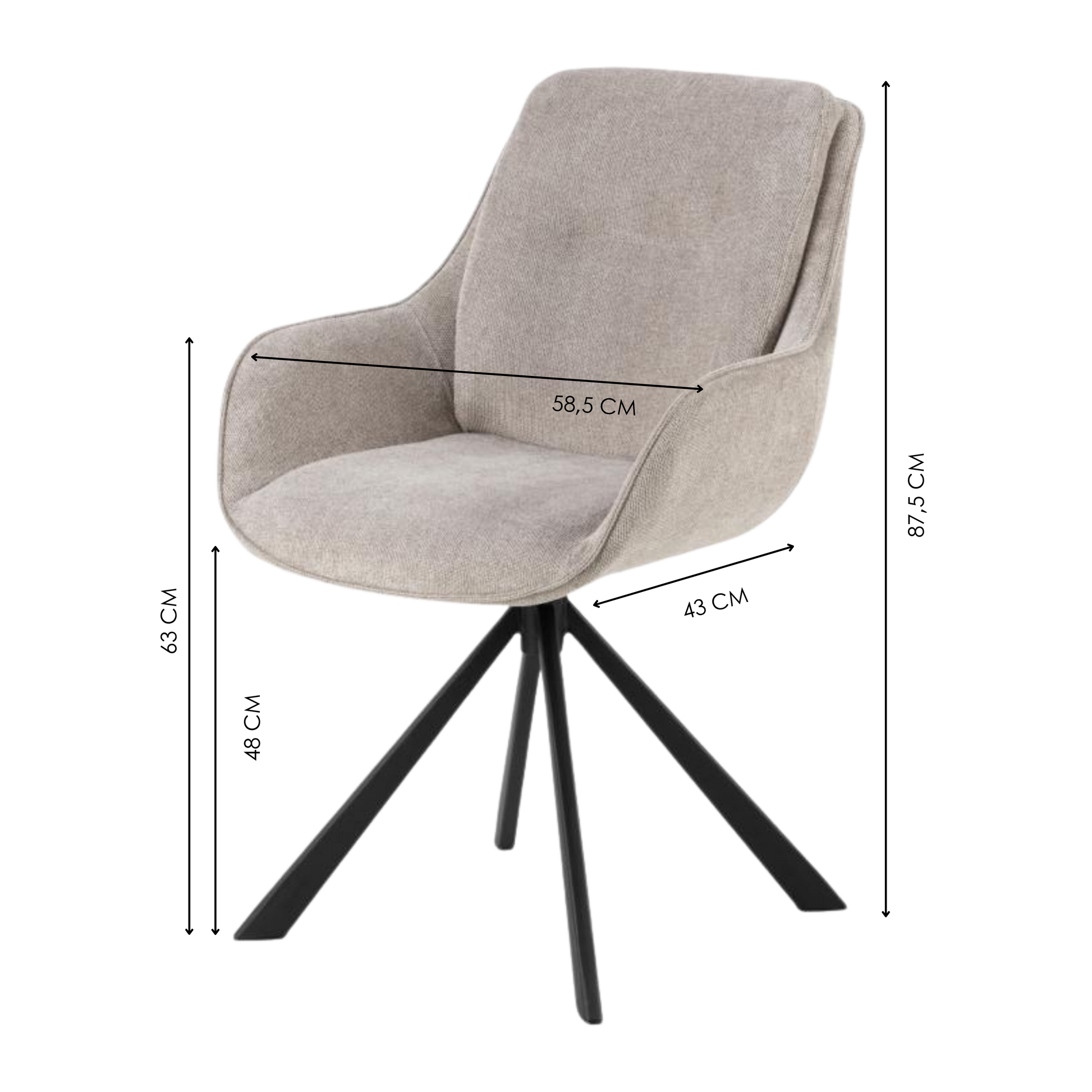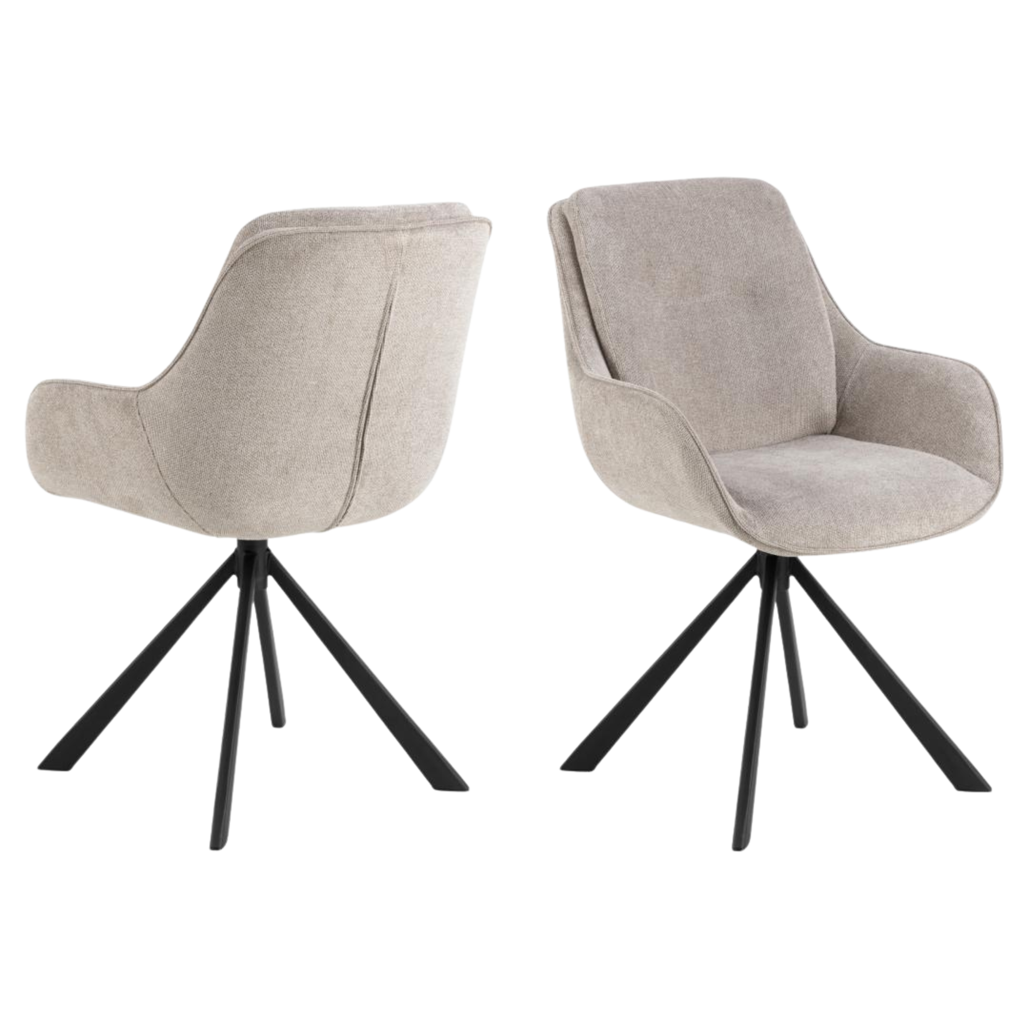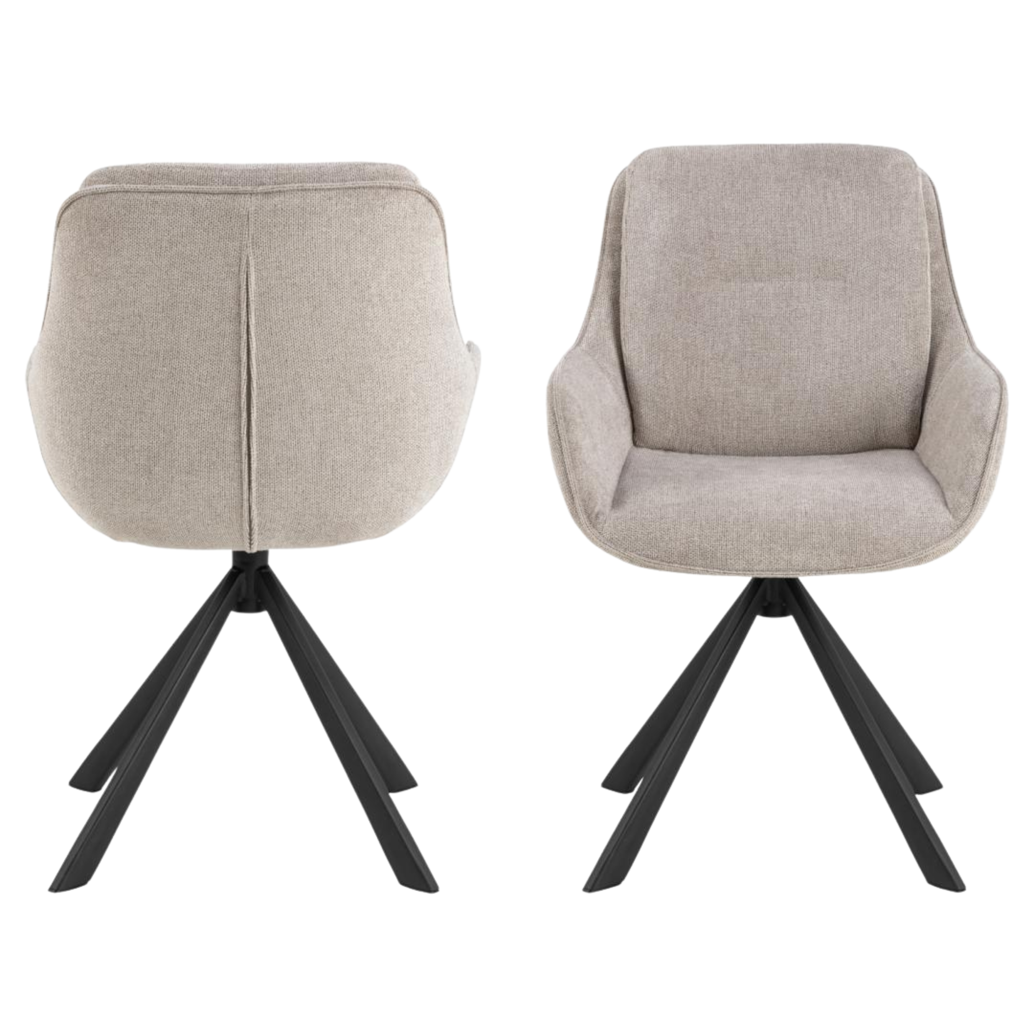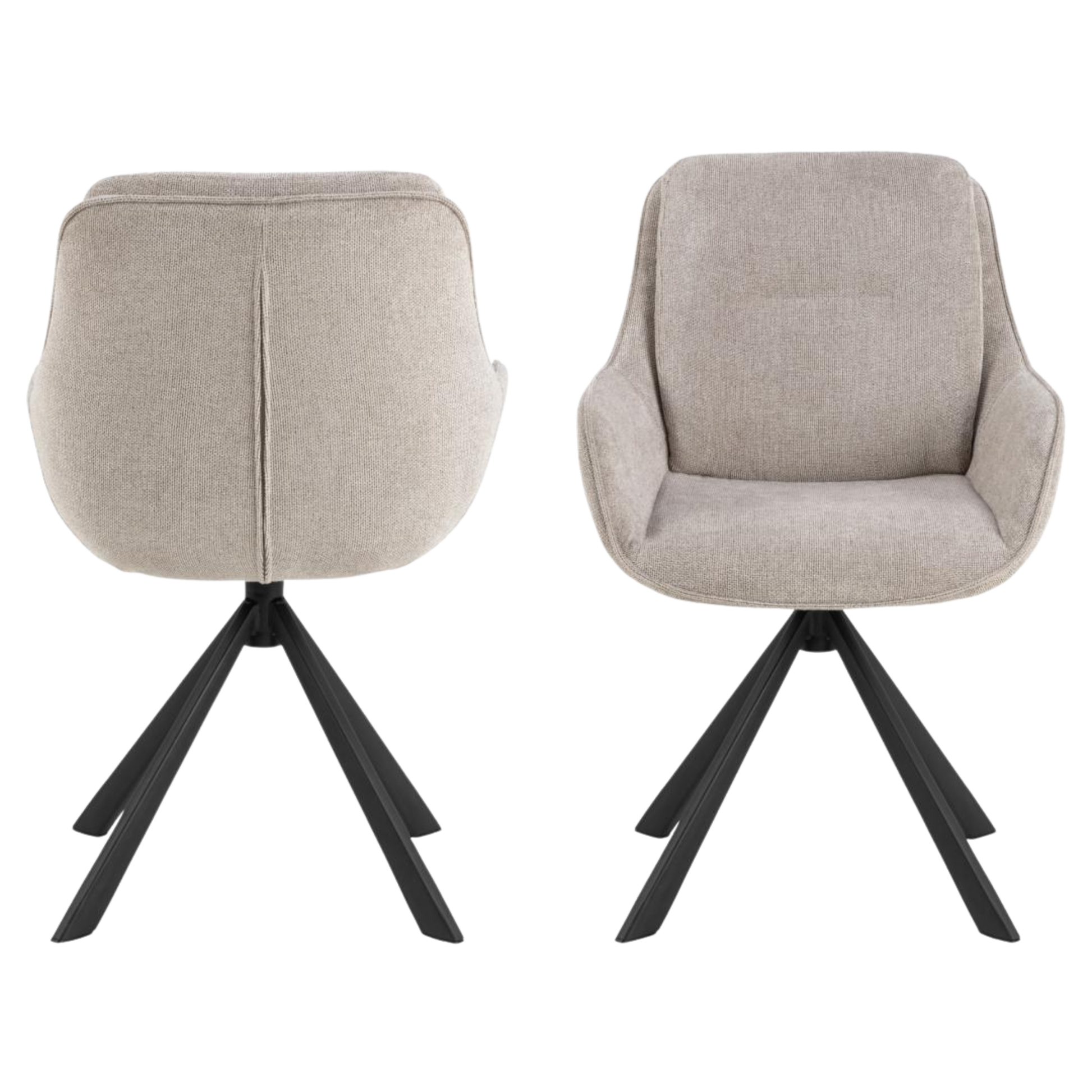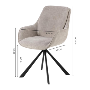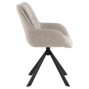Upholstered in soft, low-maintenance fabric that preserves its appearance and tactile quality through intensive daily use, this chair features a complete 360-degree swivel mechanism for effortless repositioning and a minimalist black steel base that anchors modern interiors with structural integrity.
