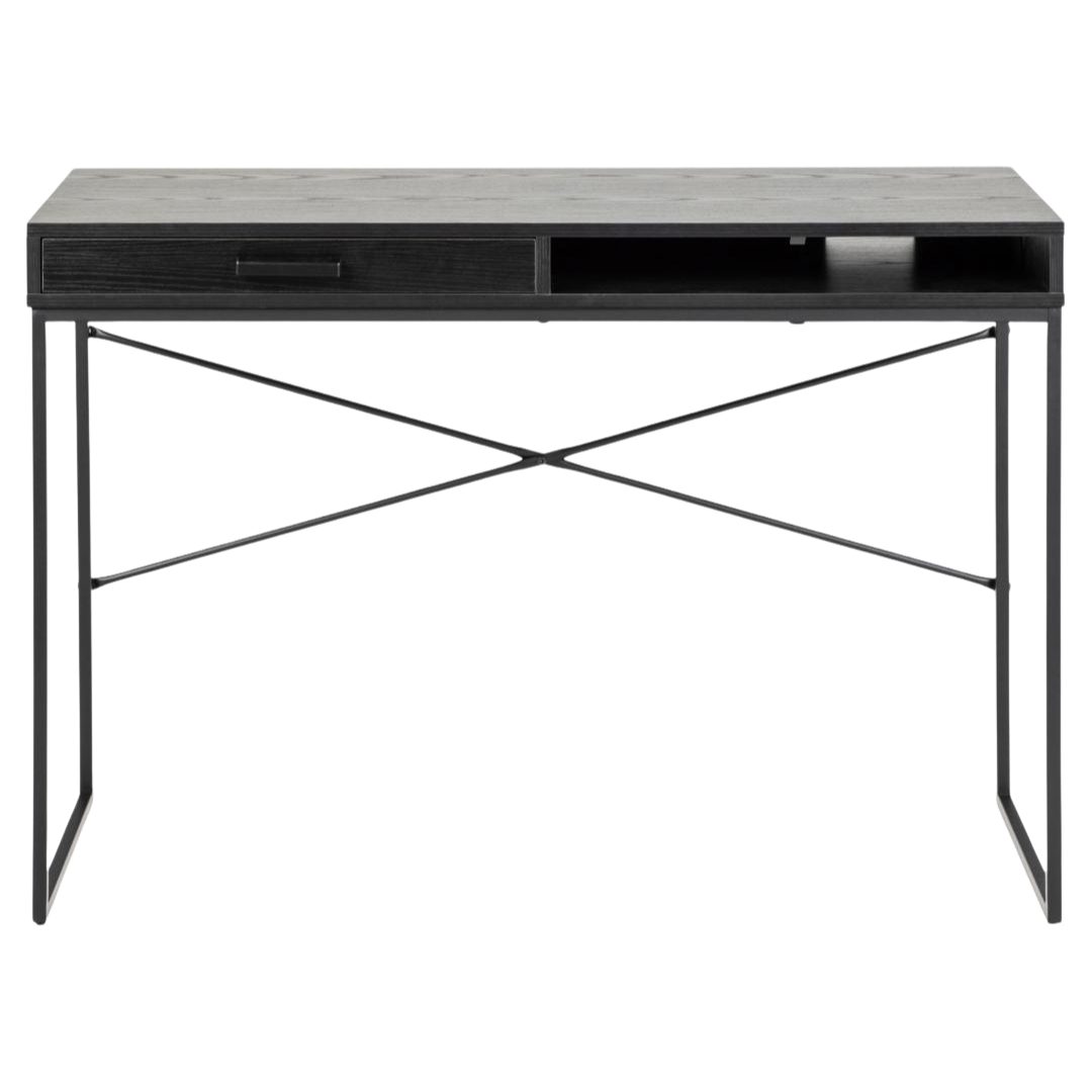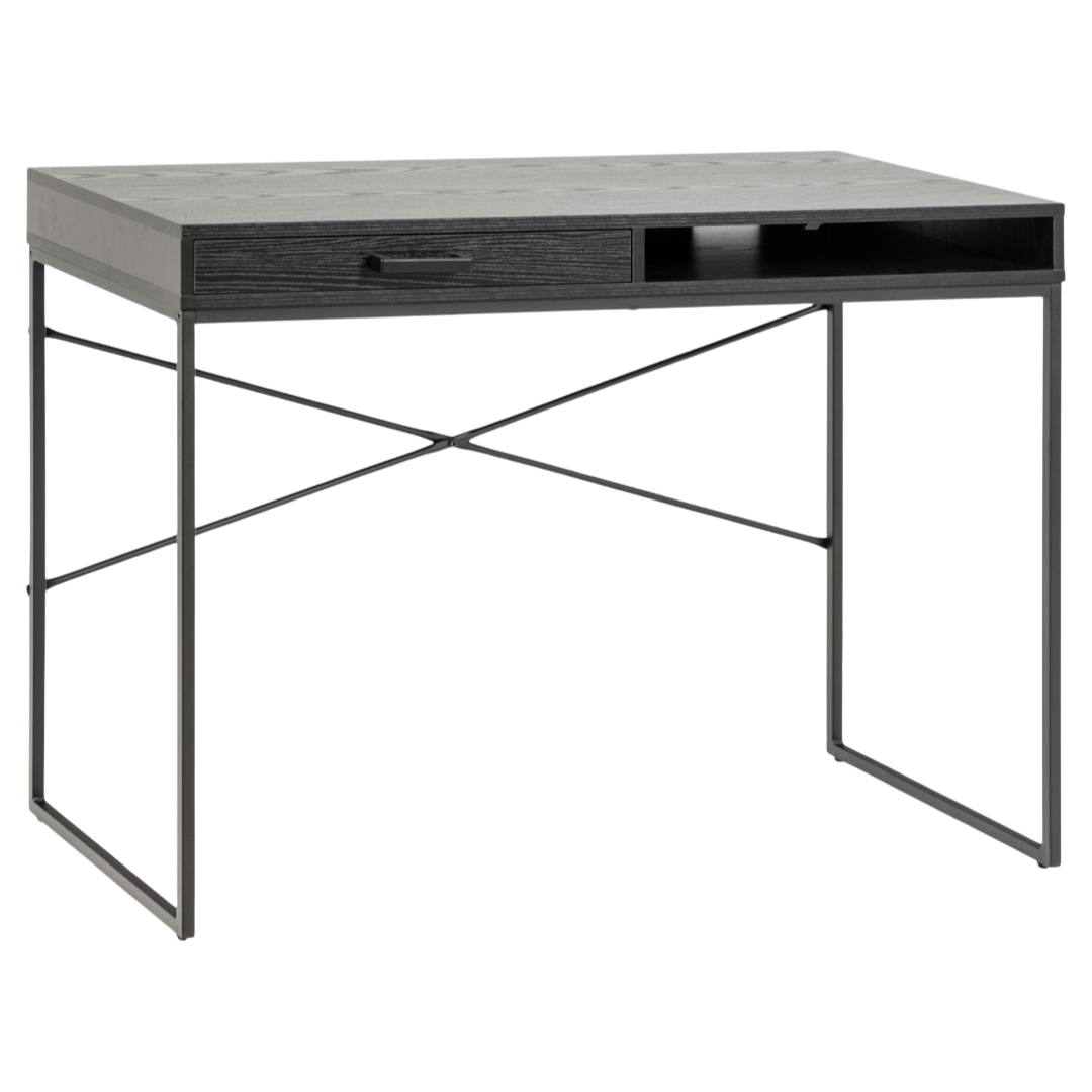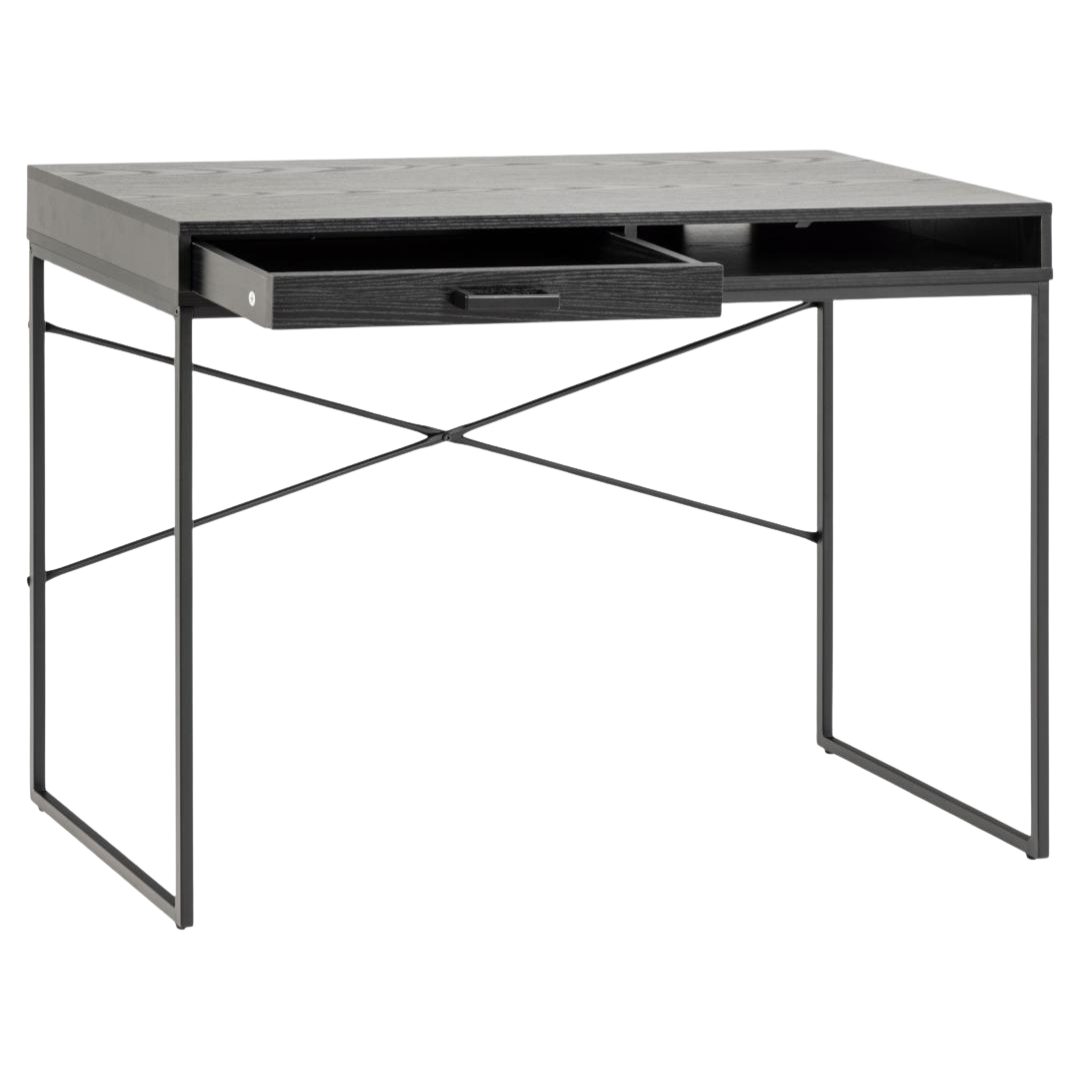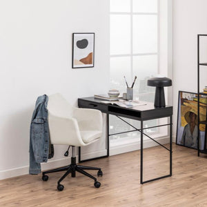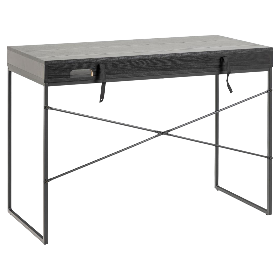 The Terra desk exemplifies timeless design philosophy through its restrained aesthetic and purposeful functionality. Featuring a sophisticated black work surface supported by slender metal legs, this piece maintains visual elegance while delivering structural reliability for daily professional demands.
