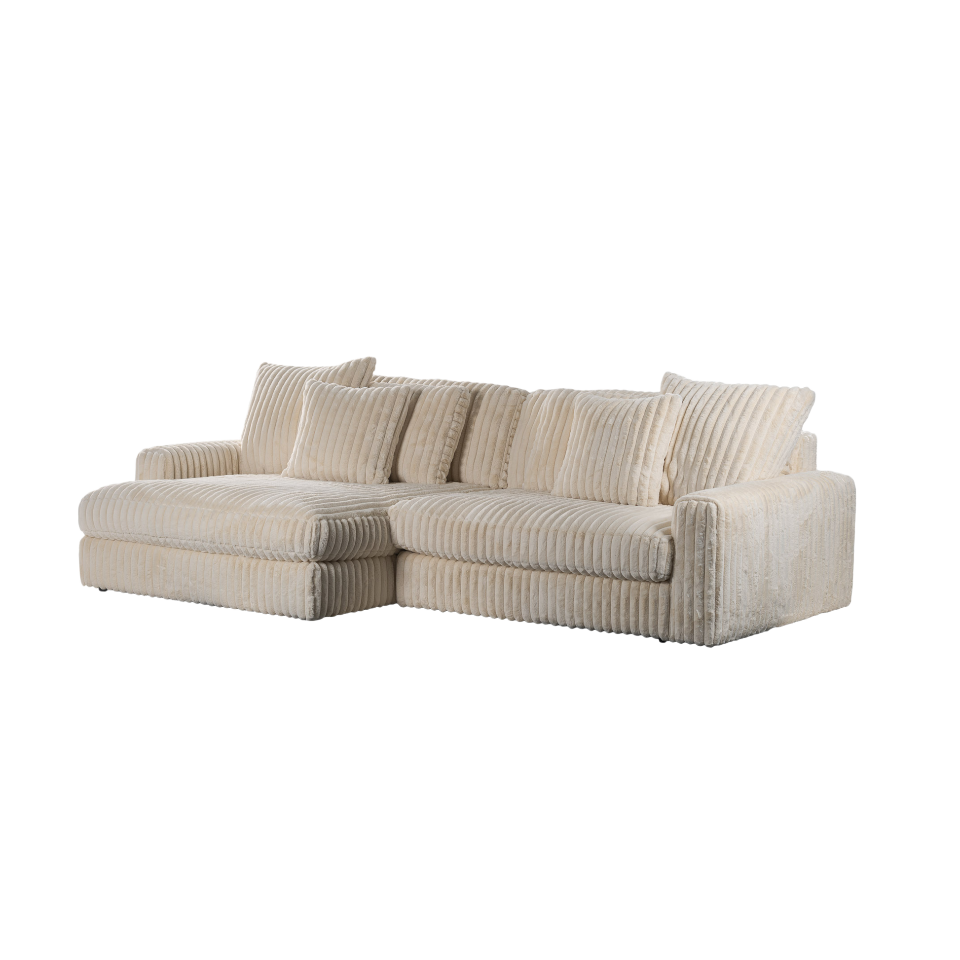 The Victoria sofa exemplifies contemporary design through its premium Vito 23 fabric upholstery in elegant beige, offering both tactile warmth and visual refinement. Available in left or right-facing configurations, this modular piece accommodates diverse spatial requirements with precision.