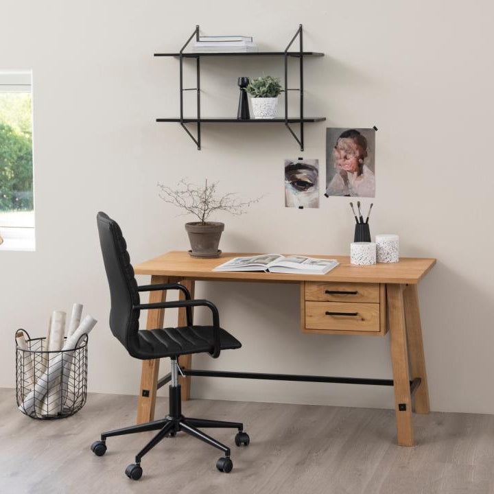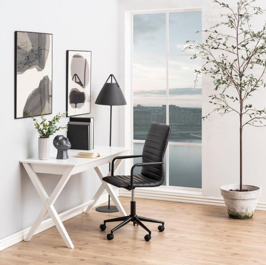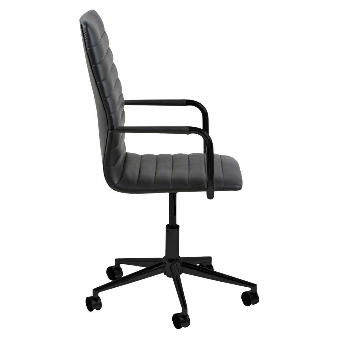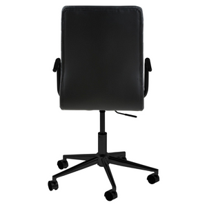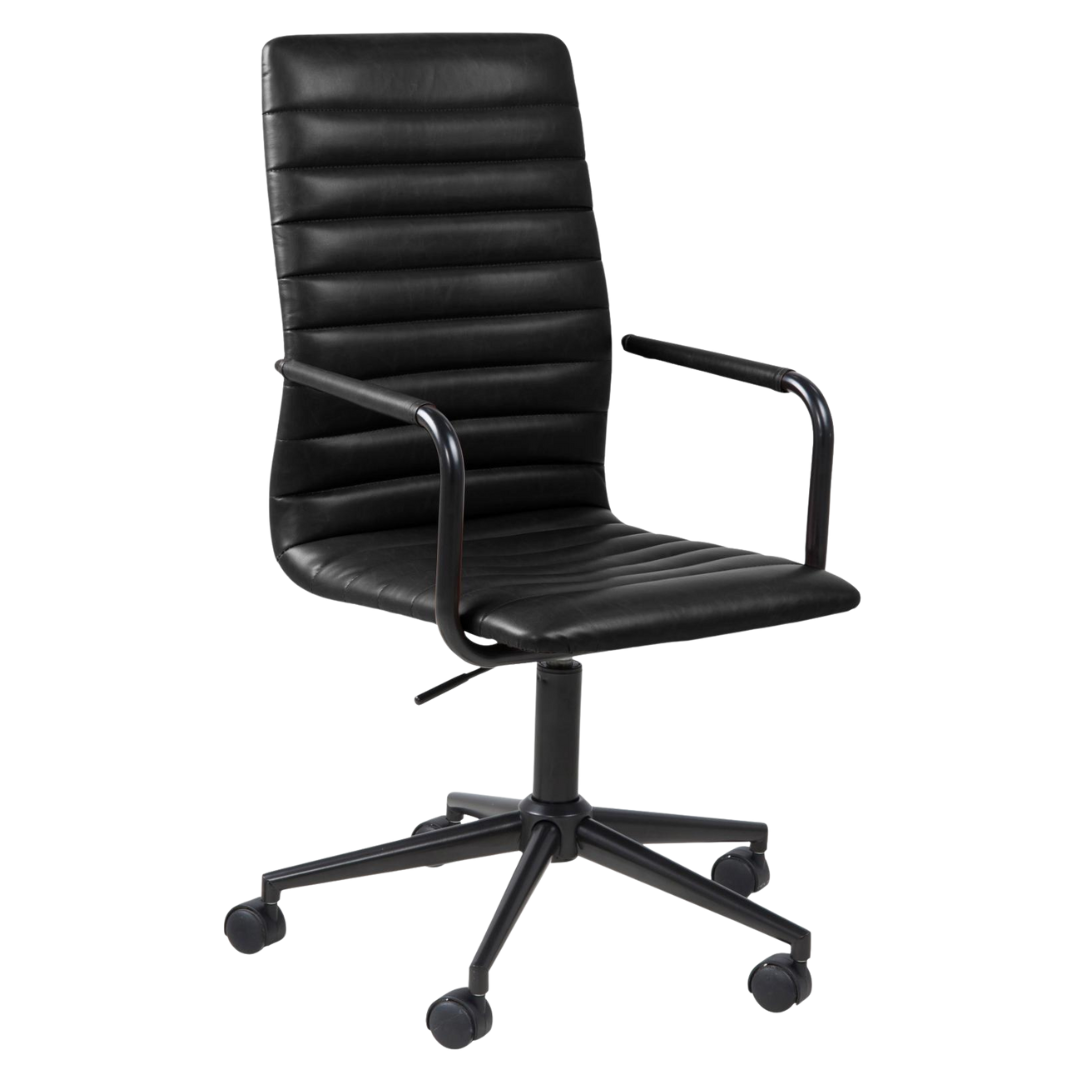 The YARA office chair delivers commanding presence through its extended backrest and refined proportions, establishing a professional seating solution with distinctive character. Upholstered in premium black synthetic leather with horizontal stitching detailing, it projects executive sophistication across contemporary workspaces.