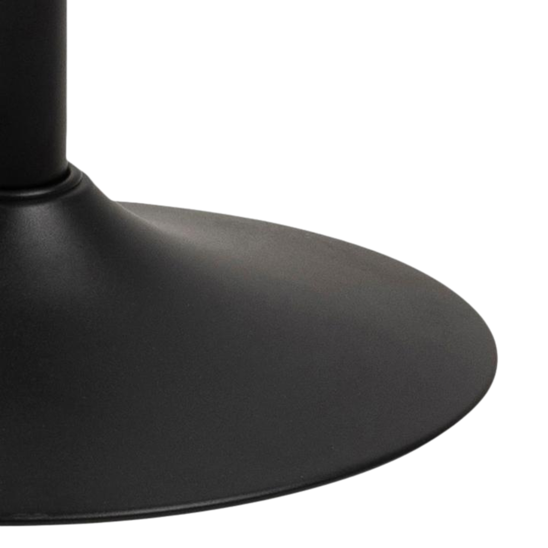 Height adjustment and full 360-degree swivel capability ensure adaptability across diverse spatial arrangements. The black trumpet base, equipped with gas-spring mechanism and footrest, delivers reliable stability and functional design.